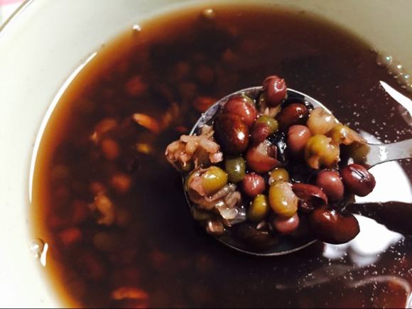 具體做法:取綠豆、赤小豆、黑豆各50克,洗凈浸泡后一起放入鍋中,加水適量,武火煮沸后換文火熬煮成湯,連豆帶湯一起服用即可。