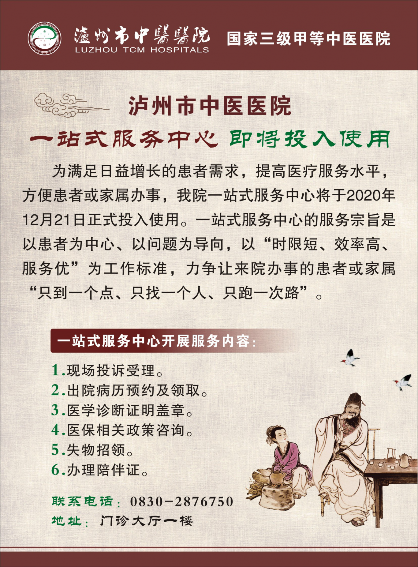 一站式服務(wù)中心整合了服務(wù)項(xiàng)目,優(yōu)化了服務(wù)流程,為患者及家屬提供貼心、周到、便捷的服務(wù),將于2020年12月21日正式投入使用。
