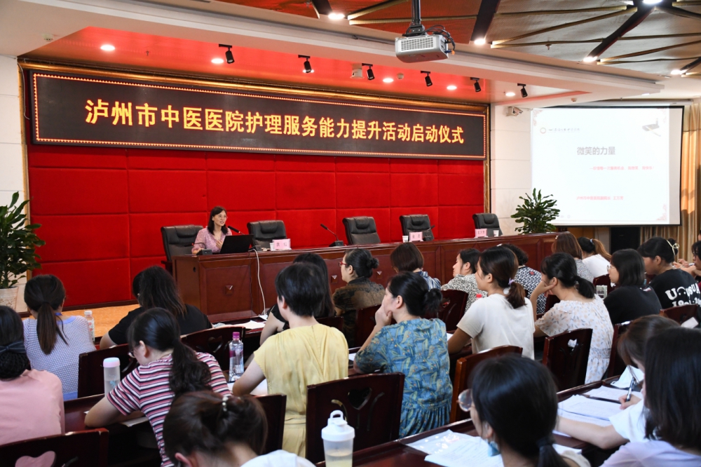 7月13日,瀘州市中醫(yī)院“貼近患者·服務(wù)先行”護(hù)理服務(wù)能力提升活動啟動儀式在11樓學(xué)術(shù)大廳舉行。瀘州市中醫(yī)院黨委副書記、院長金忠,副院長王萬芳,護(hù)理部主任袁紅,全院護(hù)士長、護(hù)士、參加規(guī)范化培訓(xùn)護(hù)士代表參加此次啟動儀式。本次會議由副院長王萬芳主持。