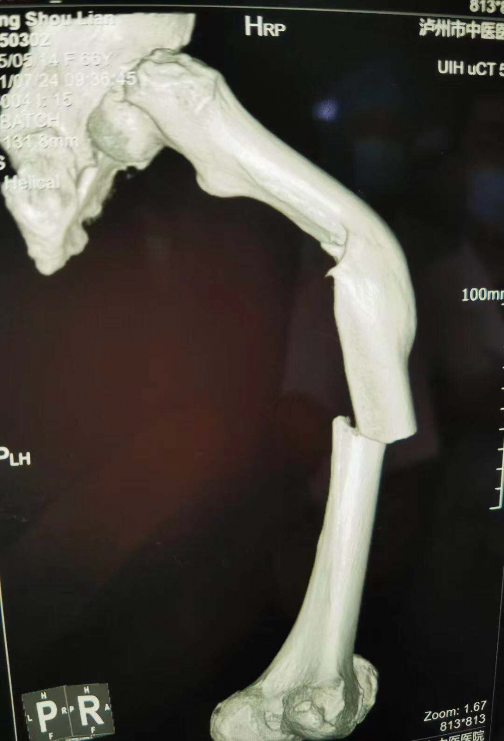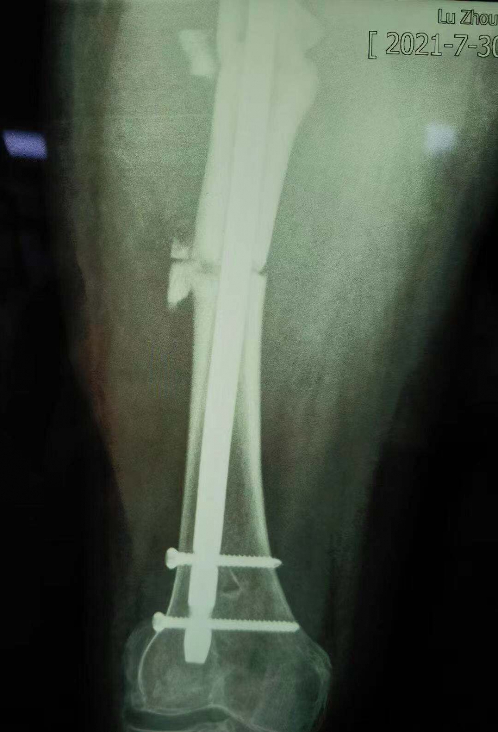 張女士家住瀘縣云錦鎮(zhèn),常年在家務(wù)農(nóng)。近日,她在家門(mén)口壩子走路時(shí),不小心把大腿摔斷,家人隨即打了120,送到當(dāng)?shù)鼗鶎俞t(yī)院進(jìn)行救治。因她的腿有基礎(chǔ)疾病,傷情較為嚴(yán)重,7月23日,又慕名轉(zhuǎn)送到了瀘州市中醫(yī)醫(yī)院骨傷一科進(jìn)行治療。