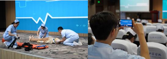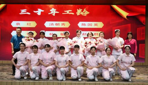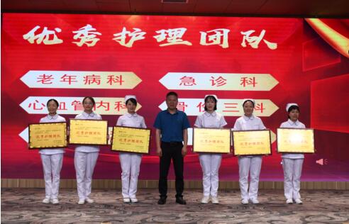 本次活動中,醫(yī)院骨科帶來了“基于中醫(yī)調(diào)護在護士睡眠管理中的運用”品管圈展示,護理急救團隊展示了為創(chuàng)傷患者的現(xiàn)場急救處理,為9位擁有30年及以上護齡的護士頒發(fā)了榮譽獎?wù)滤蜕狭缩r花,表揚了一批先進集體和先進個人。