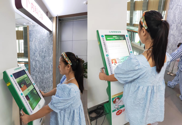 這臺(tái)被稱(chēng)為成都大運(yùn)會(huì)“黑科技”之一的立式心電圖機(jī)位于瀘州市中醫(yī)醫(yī)院城南院區(qū)門(mén)診部二樓心血管內(nèi)科診室旁,它操作簡(jiǎn)單,只需三步就能輕松監(jiān)測(cè)出是否有房顫風(fēng)險(xiǎn),重點(diǎn)還免費(fèi)。