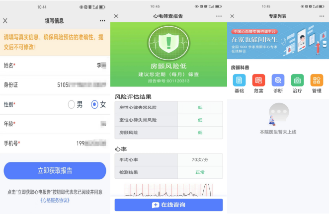 第三步:掃描屏幕顯示二維碼,填寫(xiě)信息,即可獲取實(shí)時(shí)心電圖結(jié)果。同時(shí),還可進(jìn)行在線咨詢(xún)。