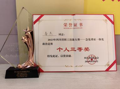 近日,由四川省醫(yī)院協(xié)會主辦,四川省醫(yī)院協(xié)會急救中心(站)管理分會聯(lián)合西部12省、市急救中心院前急救聯(lián)盟單位承辦的第六屆西部院前急救學(xué)術(shù)大會,四川省職工技能大賽——急危重癥一體化救治競賽在成都舉行。在此次四川省總工會組織的全省急診急救大比武中,瀘州市中醫(yī)醫(yī)院3名同志代表瀘州市參賽,在激烈的比賽中獲得團體三等獎!
