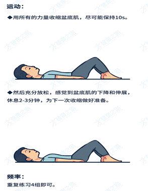 4.盆底肌訓(xùn)練:盆底肌訓(xùn)練又稱凱格爾運(yùn)動(dòng),是壓力性尿失禁的一線治療方法。排尿后躺平,雙腿彎曲,呼吸平穩(wěn)放松,持續(xù)收縮盆底肌 5-10 秒,然后放松肌肉,停留數(shù)秒,如此收縮放松反復(fù) 10 次為一組,每天訓(xùn)練 3-4 組,約 15 分鐘,每周 3-5 次,持續(xù) 2 個(gè)月或更長(zhǎng)時(shí)間。