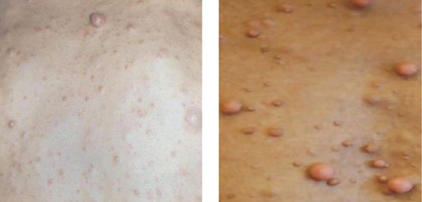 一種常染色體顯性遺傳病,表現(xiàn)為軀干及四肢近端為主多發(fā)性數(shù)毫米至數(shù)厘米的半球狀或帶蒂的腫瘤,柔軟,皮色或粉紅色,隨年齡增多增大,成年發(fā)展較慢。該疾病目前無(wú)法徹底治愈,但手術(shù)可緩解部分癥狀。