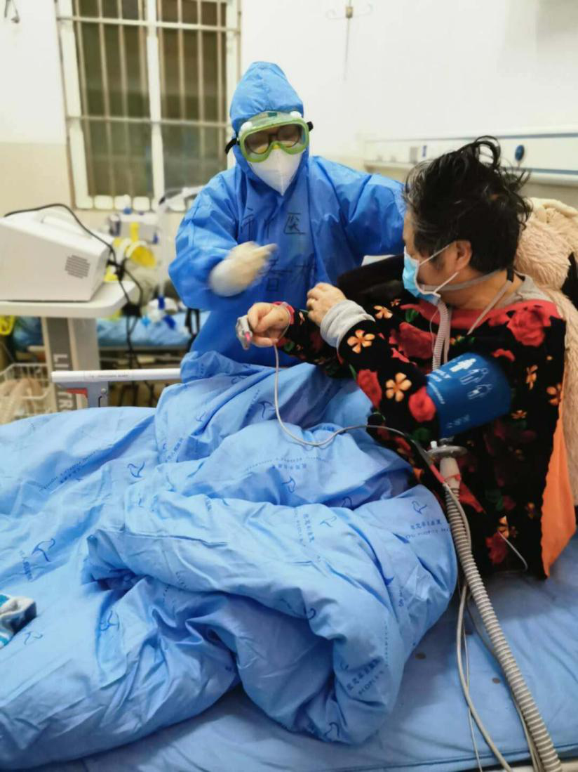 2月1號中午12點(diǎn),我和其他兩個(gè)同事是第一批進(jìn)入病區(qū)的,與緊急駐守在傳染病醫(yī)院的同志進(jìn)行換防。雖然我們經(jīng)過系統(tǒng)的訓(xùn)練和考核,但是心里始終有些緊張,一層手術(shù)衣一層防護(hù)服一層隔離衣,n95的口罩,護(hù)目鏡,全副武裝的我感覺到行動(dòng)緩慢,呼吸變得困難。熟悉病人、病情、病房環(huán)境,護(hù)理病人,溝通病情,逐漸我忙碌起來,似乎就忘記了因防護(hù)用具帶來的不舒適。在晚上7點(diǎn)過,我也順利出病區(qū)了,第一天完美度過??粗∪艘粋€(gè)一個(gè)的出院,新增也越來越少,我特別高興,這意味著,我們這次抗疫也即將迎來勝利,在艙里,特別感謝后勤保障同事們的付出,全力滿足了我們的要求,還有護(hù)士長,醫(yī)院領(lǐng)導(dǎo)的關(guān)心,在這短短的16天,有緊張害怕,有團(tuán)結(jié)一致,也有快樂感動(dòng)。茍利國家生死以,豈因禍福避趨之,致敬所有逆行者。