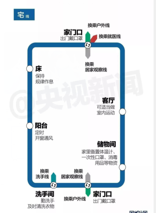 疫情發(fā)生以來,“宅”成為了人們生活的主旋律,每天不是在家里蹲,就是在家里躺。有的網(wǎng)友甚至還自我調(diào)侃,制作出了“客廳-陽臺(tái)-臥式-廁所-廚房的宅家換乘線路圖”。