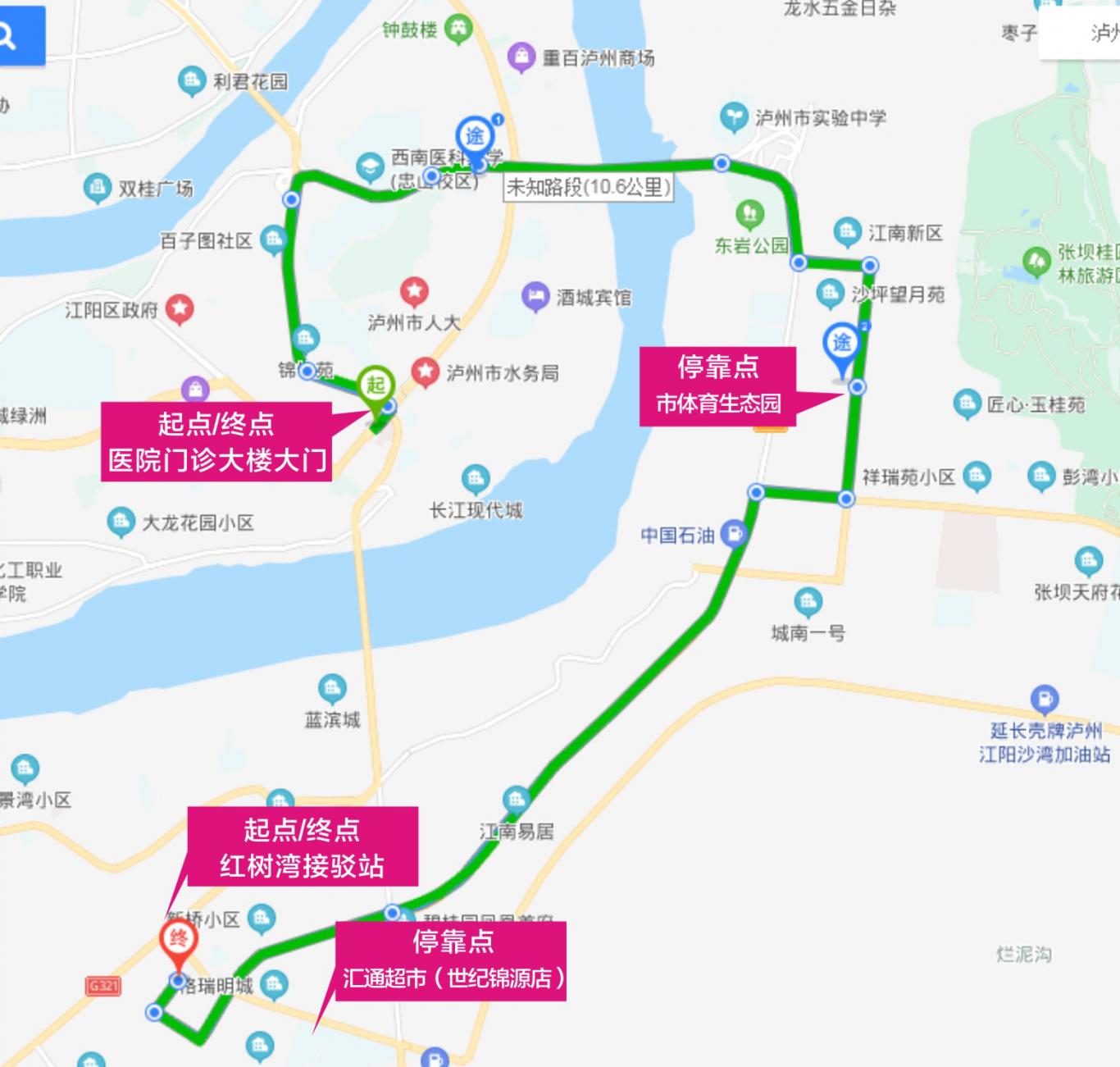 紅樹灣接駁站(金紅裕家食府停車場)?匯通超市(世紀(jì)錦源店)?市體育生態(tài)園?醫(yī)院門診大樓大門