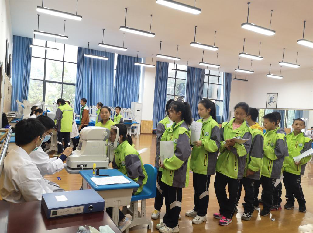 在活動(dòng)現(xiàn)場(chǎng),學(xué)生們有序地排隊(duì)進(jìn)行了視力篩查,檢查項(xiàng)目包括:視力檢查、電腦驗(yàn)光等。