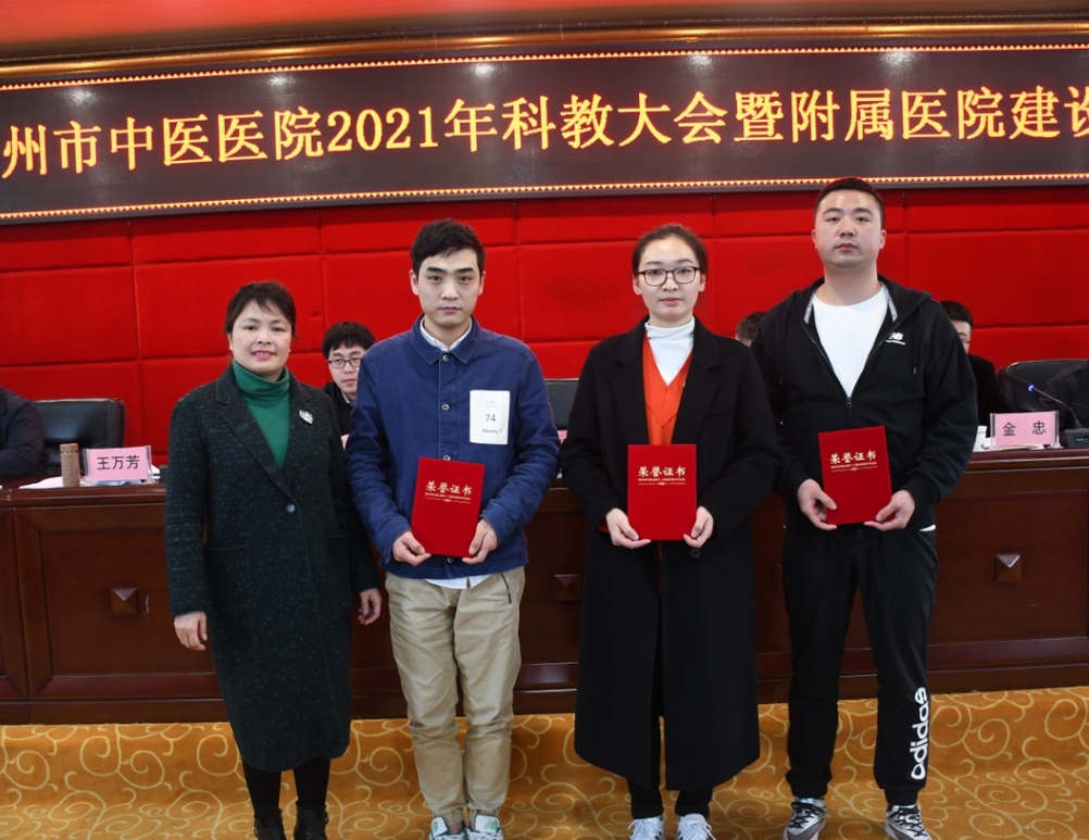 副院長胡偉宣讀《瀘州市中醫(yī)醫(yī)院關(guān)于表彰2020年度科教工作先進集體和先進個人的決定》