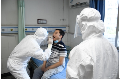 模擬對(duì)患者進(jìn)行核酸檢測(cè)