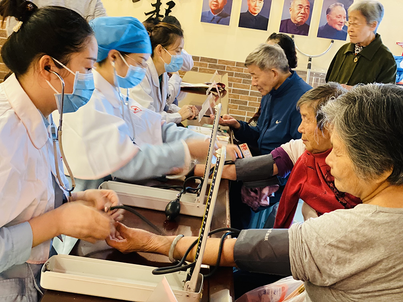 醫(yī)務人員為來到現(xiàn)場的居民進行免費查血壓、健康咨詢,還向他們贈送中醫(yī)文化紀念品。義診活動在融洽、歡樂的氛圍當中進行,隨后社區(qū)居民還一起合照、做游戲。
