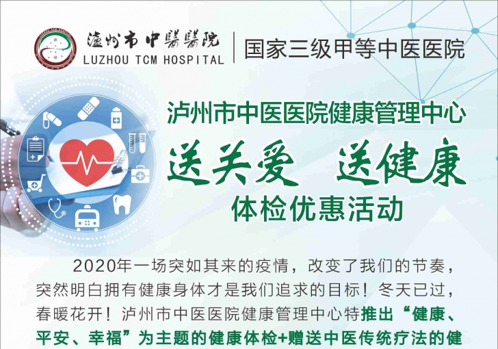 廣大市民朋友:在疫情防控期間,為滿足群眾健康體檢需求,瀘州市中醫(yī)醫(yī)院健康管理中心已有序恢復正常體檢。為了合理分流,確保體檢人員安全,現(xiàn)將具體事宜通知如下:1.健康體檢時間上午:8:00—11:30;駕駛員體檢:下午2:30—5:00;2.每日接待健康體檢50人次,機動車駕駛員體檢20人次(需提前一天...